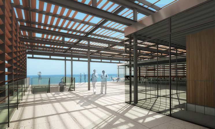 El proyecto pretende aprovechar un entorno rodeado de mar y resolver un programa caracterizado por una gran sala de ensayos marinos, haciendo lo más amable posible la implantación en el lugar, el trabajo al investigador y la parada a los posibles paseantes.