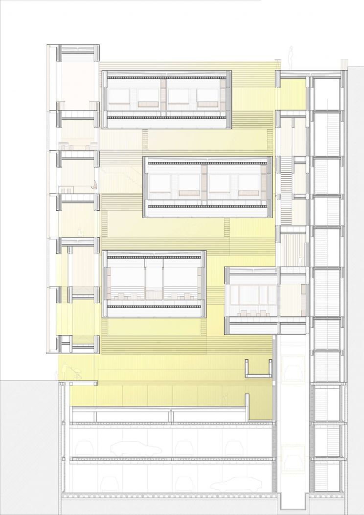 Edificio Híbrido (Guardería y apartamentos) y recuperación de la plaza del Caño Argales en Valladolid. Ciudad compacta + Revitalizar : Continuidad espacial+fachada parlante+plaza isla. Programa: "Estructura lúdica" : anillo (plaza vertical)+volumenes(células mínimas) Materialidad:Madera,desarrollo de lo prefabricado.