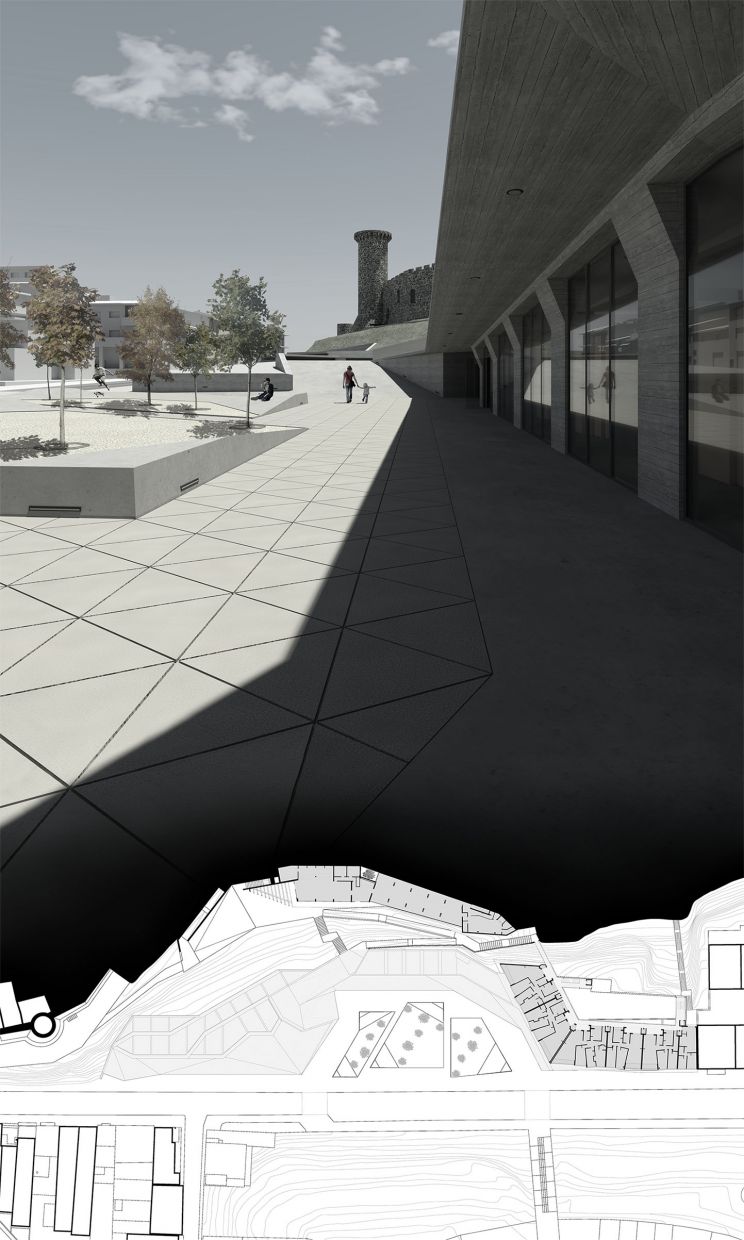 El proyecto pretende transformar un espacio que no responde a las necesidades de una zona importante dentro del pueblo, en la unión de la trama urbana vieja con la nueva, delante de la muralla. La propuesta pretende completar adecuadamente la trama urbana, dotar de las funciones necesarias para reactivarla y hacerla permeable al paso de peatones. En resumen crear un nuevo espacio agradable para los vecinos, bien integrado con el entorno y donde apreciar mejor el importante patrimonio histórico.