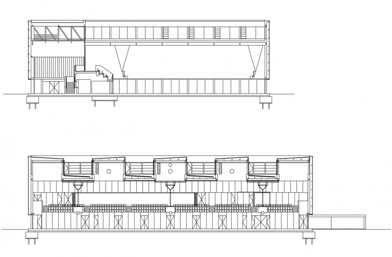 Ambos volúmenes se resuelven con la geometría más clara y rotunda posible, como cajas sobre el terreno.