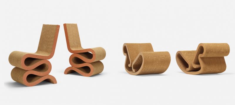 Muebles de la colección “Easy Edges” desarrollada por Gehry entre 1969 y 1973 (© The Millie vintage)