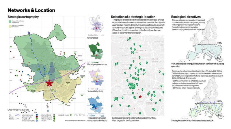 El desarrollo del proyecto parte de la base del urbanismo y de un estudio profundo que permitió elegir el lugar más adecuado para el proyecto, siendo este el barrio de Delicias. Un espacio cuyo pasado industrial se suma a las buenas conexiones con el entorno mediante diferentes medios de transporte que hacen de este un lugar privilegiado. Además, el barrio se entiende como un punto intermedio entre dos grupos sociales de diversos ingresos, pues se encuentra a modo de bisagra entre la zona norte y la zona sur de Madrid.