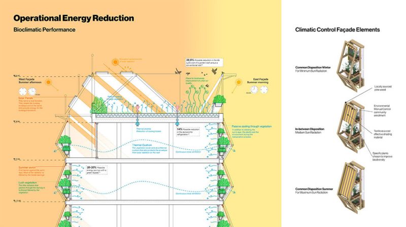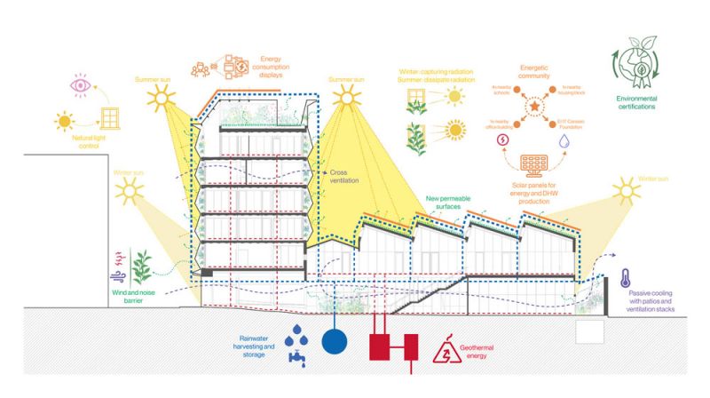 Estudio de las estrategias bioclimáticas y las instalaciones del proyecto (© Husos Arquitecturas + Elii)