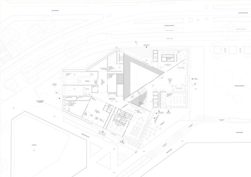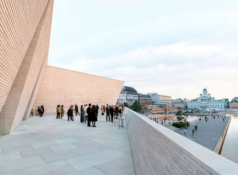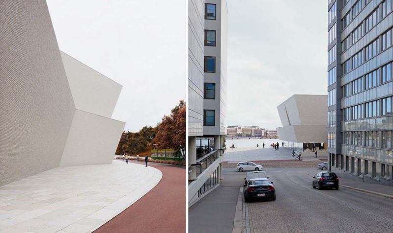 Las fachadas inclinadas, la masa dividida del conjunto y la pesadez flotante generan impresionas atractivas y contextuales generando una atracción pública que permite a Helsinki consolidarse como un destino cultural único.