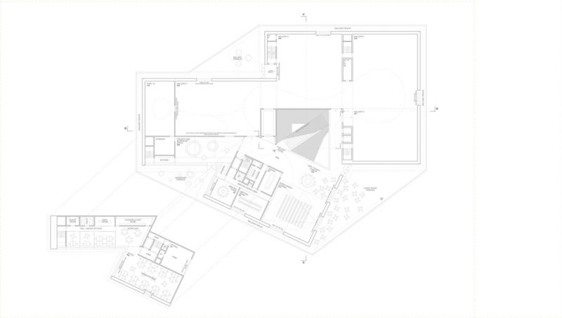 Cabe destacar también la presencia de un gran elemento central que baña de luz el interior del edificio. Este tragaluz ha sido diseñado con una inclinación tal que permite su sencilla conservación y mantenimiento. Además, el empleo de sistemas constructivos ventilados para la canalización del agua de lluvia desde los diferentes puntos de la cubierta del edificio hacia el perímetro exterior evitará la penetración de la misma en los espacios expositivos.