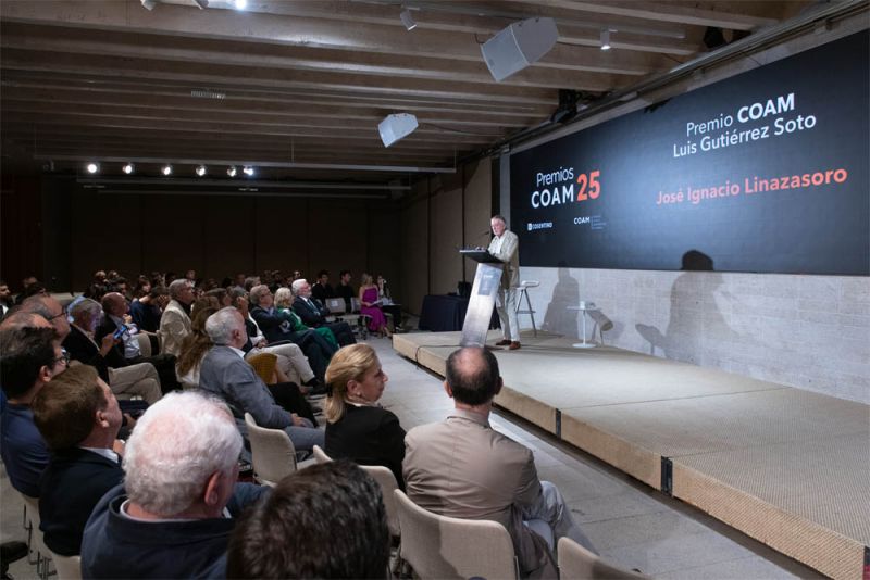 Este último, es uno de los premios más valorados de la gala, pues se trata de un galardón especial que se otorgó por primera vez en la edición de 2024, reconociendo la trayectoria profesional de un arquitecto o equipo de arquitectos colegiados COAM con más de 30 años de ejercicio profesional. En la presente edición, el galardón ha recaído sobre el arquitecto José Ignacio Linazasoro, cuyas obras de indudable calidad arquitectónica han producido contribuciones significativas a la sociedad, la cultura y el entorno construido. Además, el jurado ha destacado su labor como docente de Proyecto Arquitectónicos en la ETSAM, así como las intervenciones como profesor invitado en numerosas instituciones internacionales, inspirando con ello a las futuras generaciones de arquitectos a explorar la relación entre historia, contexto y contemporaneidad.